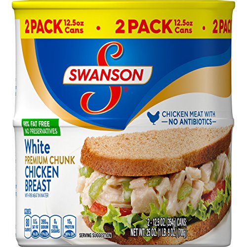 Swanson Premium White Chunk Chicken Breast is fully cooked and perfect for quick and easy everyday meals and sides. Living up to Swanson's tradition of simple ingredients, our delicious white chunk chicken breast meat has no antibiotics and comes from farm-raised chickens in the USA. It's 98% fat free and contains no added preservatives, added MSG or artificial flavors. Whether you're simply adding to salads or crackers or looking for a recipe shortcut, Swanson Premium White Chunk Chicken Breast fulfills all your culinary needs.