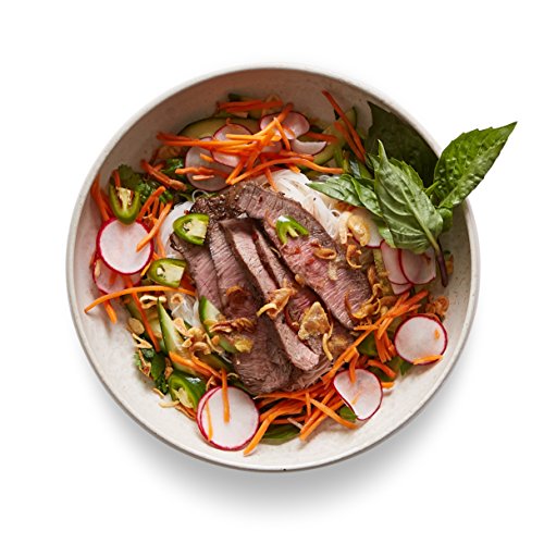 - Spice-rubbed beef, fresh and quick-pickled veggies, and herbs served over rice noodles and dressed with nuoc cham