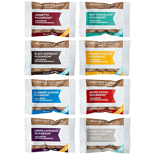 Includes all eight Packaroon flavors: Amaretto, Blueberry, Lemon Lavender, Sweet Coconut, Spiced Cocoa, Black Espresso, Orange Vanilla & Mint Chocolate. Wholesome, Gluten-Free, Allergen-Friendly for Backpacking, Camping, Hunting and Travel.