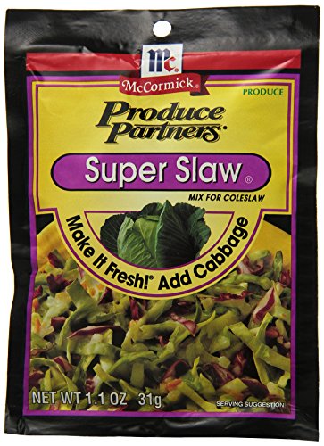 Make it fresh Add cabbage.Features. Super Slaw.. Pack of 12. Item weight - 1.01 oz.IngredientsSugar Salt Onion Carrots Spices Nonfat Yogurt Cultured Nonfat Dry Milk and Sodium Citrate.DirectionsYou Will Need 1 cup mayonnaise 2 tbsp sugar 2 tbsp vinegar 8-9 cups shredded cabbage. Combine 1 pkg Super Slaw mix with mayonnaise 12 cup fat-free sour cream or plain yogurt may be substituted for half the mayonnaise sugar and vinegar. Add cabbage green cabbage or a combination of red and green cabbage may be used. Toss well. For extra flavor and color add shredded carrots broccoli zucchini or yellow squash. Chill one hour or more. Makes 10 12 cup servings. Broccoli Salad Combine Super Slaw Mix with mayonnaise sugar and vinegar as directed. Toss with 5-6 cups small broccoli or cauliflower flowerets and 12 cup cooked crumbled bacon. Chill.